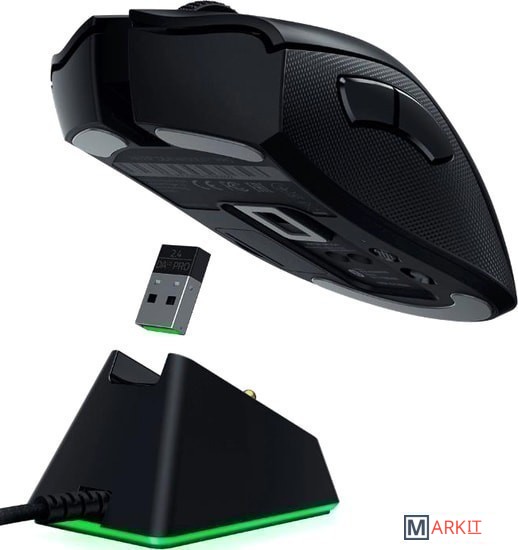Ресурс прочности кнопок составляет 70 млн. нажатий. Максимальное ускорение 50G. Максимальная скорость передвижения до 650 дюймов/сек. Совместима с док-станцией Razer Mouse Dock Chroma (в комплект поставки не входит).