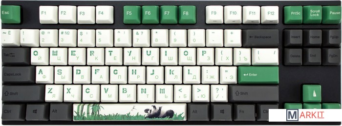 В обновлённой версии клавиатура получила USB Type-C порт взамен старого Mini-USB.Данная модель представлена в необычном серо-зелено-белом цветовом сочетании, на пробеле есть красивый рисунок, буквенные клавиши имеют необычный салатовый шрифт. USB Type-C порт спрятан в центре под корпусом, а на самой клавиатуре имеются центральная и две боковые канавки под кабель.Переключатели EC Switch V2Фирменные переключатели от Varmilo подарят вам отличные ощущения от тайпинга. По сравнению с традиционными переключателями, EC Switch V2 мягче и стабильнее, а также обладают существенно большей долговечностью благодаря индукционному принципу срабатывания (без прямого соприкосновения контактов).Мультимедиа и дополнительные FN функцииКлавиатура поддерживает сочетания клавиш для регулировки громкости и управления музыкой. Также имеется возможность отключить кнопку windows и поменять клавиши Fn и Win/Ctrl и Caps Lock местами.Клавиши толщиной 1.4 ммНовые клавиши V-Silk имеют гладкую поверхность и гораздо меньше притягивают грязь, оставаясь при этом такими же приятными на ощупь, но уже по-новому. Клавиши изготовлены из высокопрочного пластика PBT с применением dye-sublimation технологии, с выгравированными символами на боках. Использование dye-sub позволяет символам никогда не стираться и никак не чувствоваться при печати, а качественный PBT пластик гарантирует надежность и долговечность.Из-за особенности производства символы на клавишах могут быть расположены с небольшим сдвигом.Стабилизаторы, смазанные на заводеСочетание стабилизаторов и смазки позволяет добиться максимально равномерного и плавного хода клавиш enter/space/shift/backspace, а сами клавиши легко снять с клавиатуры.Белая подсветкаИмеется 3 разных режима (выключена, статичное свечение, эффект затухания) и 4 уровня яркости. Режимы меняются через FN + стрелка вправо, FN + стрелка вверх/вниз меняет яркость в режиме статичного свечения и скорость в режиме затухания.Двойные регулируемые ножкиПозволяют установить угол наклона 4, 8 или 12 градусов для более комфортной печати, а их прорезиненный низ не даст клавиатуре сдвинуться с места.Звукопоглощающая подложкаПоглощает звуки при нажатии, делая процесс печати более тихим по сравнению с обычными механическими клавиатурами.Клавиатура полностью совместима с Mac OSВсе мультимедиа и дополнительные FN функции совместимы с MAC OS и работают как полагается, а поменять местами клавиши-модификаторы можно в системных настройках. Проверено с MAC OS 10.13.Функция Full N-key Rollover по USB (NKRO)Позволяет нажимать одновременно неограниченное количество клавиш. Для печати идеально подойдет как 6KRO, так и NKRO независимо от вашей скорости. Для игр NKRO будет плюсом и неважно, нажимаете ли вы больше 6 кнопок или нет, поскольку, играя в любую игру, вы можете случайно нажать пару лишних клавиш и из-за этого клавиатура имеет шанс не среагировать на нажатие, которые вы хотели совершить изначально. Осторожно, старые BIOS-ы могут не реагировать на клавиатуру из-за NKRO.