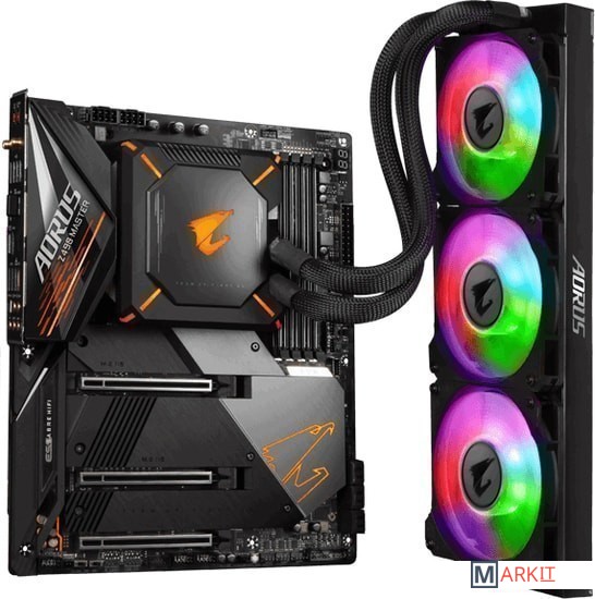 В комплект поставки входит водяное охлаждение Aorus CPU + VRM Liquid Cooler 360 и M.2 Thermal Guards II.