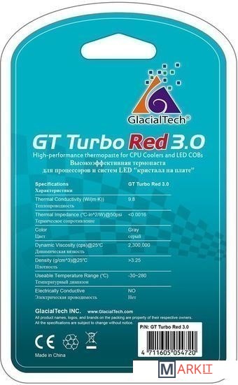 Markit » Системы охлаждения » Термопаста GlacialTech GT Turbo Red 3.0 (3 г)