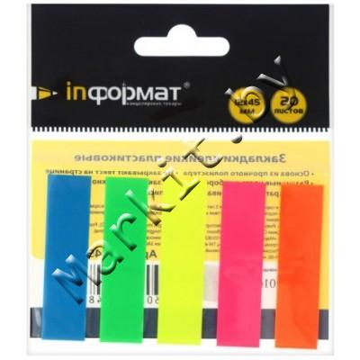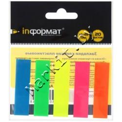 Закладки-разделители пластиковые с липким краем inФормат, 12 x 45 мм, 20 л. x 5 цветов, неон Код: 31316